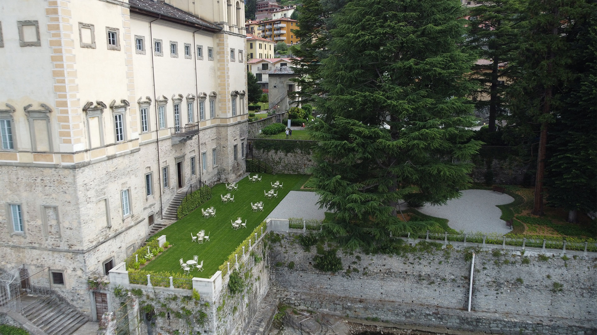 Le azioni nel parco storico sono puntuali e coerenti con il lessico dei giardini del Lago di Como, mentre il ripiano est, anticamente destinato a brolo, viene completamente ripensato.